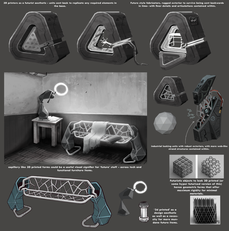 This project represented an exciting opportunity to contribute towards a complex horror sci-fi setting with a very focussed brief of assisting the art team in finding a visual aesthetic for a 'future society' that both belonged to the game world of Death Grounds but was also, due to the time travel narrative, suitably foreign in nature too. I was tasked with creating some broad visualizations and conceptual approaches to display a form of futurism that could work within the game world (principally set in the late 20th century)